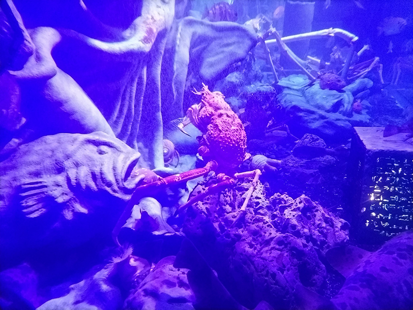駿河湾に生息する世界最大のカニ「タカアシガニ」やメキシコの深海800mに棲む「ダイオウグソクムシ」、古代ザメ「ラブカ」や5mを超える「メガマウスザメ」のはく製など、様々な深海生物の魅力を紹介しています。